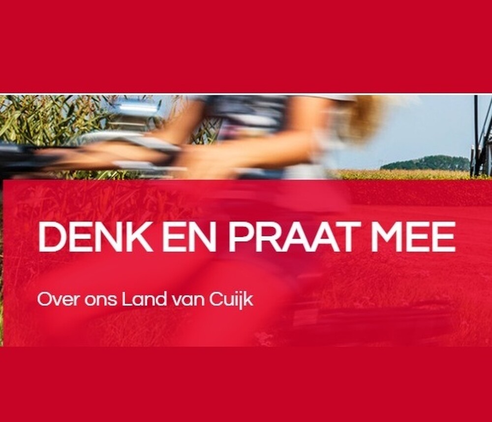 Gemeente Land van Cuijk vindt samenwerking met inwoners belangrijk. Daarom wil ze graag weten hoe jij deze samenwerking ervaart en wat er beter kan. Vul de korte vragenlijst in of kom naar één van de bijeenkomsten over dit onderwerp om je ideeën te delen. Meld je hier aan: https://ons.landvancuijk.nl/participatiebeleid