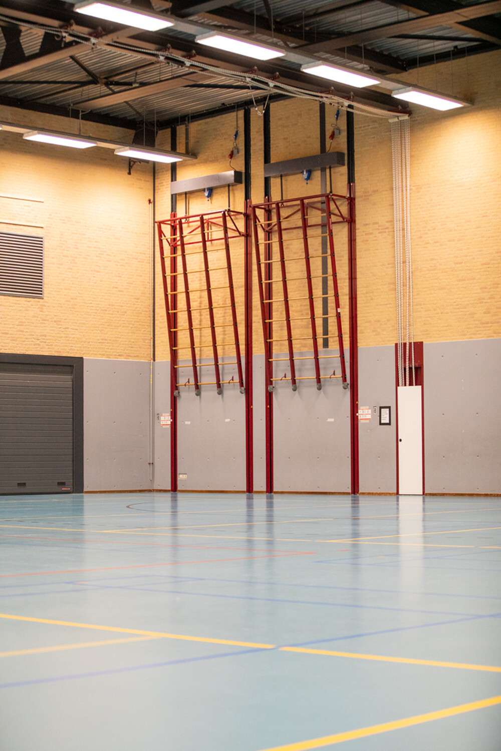 Onze grote sporthal is een fantastische ruimte voor sportliefhebbers! Met een oppervlakte van 1125 m² is er genoeg ruimte voor allerlei sporten, van volleybal en turnen tot gymnastiek en badminton. Er zijn veel sportartikelen beschikbaar, zoals ringen, stangen, netten en ballen, dus er zijn mogelijkheden te over. De sporthal is ook geschikt voor grotere evenementen zoals toernooien en clinics. Er zijn scheidingswanden waardoor de hal in drieën gedeeld kan worden. Zo kun je bijvoorbeeld een wedstrijd of een clinic houden terwijl er in de andere helft van de hal lesgegeven wordt. U kunt ook 1 of 2 delen huren.